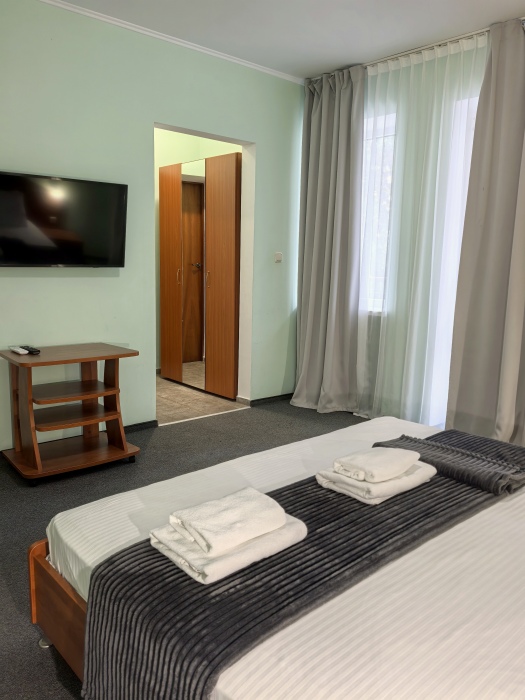 | Комментарий к цене | Завтрак, на двоих гостей, включен в стоимость проживания. Дети от 0 до 3 лет, размещаются бесплатно, без предоставления места. Дополнительные места, предоставляются по запросу. Дополнительные услуги не включаются автоматически в общую стоимость и оплачиваются отдельно во время вашего проживания. Максимальное количество дополнительных кроватей и детских кроваток зависит от выбранного номера, при наличии возможности.. Проверьте его условия, чтобы узнать максимальную вместимость. Мы рады приветствовать ваших четвероногих друзей! Размещение по согласованию до 5кг. Услуга платная. |