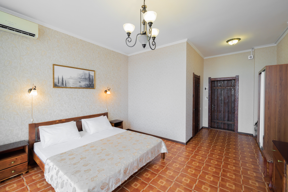 | Комментарий к цене | Цена указана за 2-местное размещение в номере в сутки (в рублях). Дети до 4х лет размещаются бесплатно (питание приобретается за дополнительную плату по желанию). В стоимость входит: - проживание в номере выбранной категории (без доп. места); - предоставление детской кроватки; - пользование детским стульчиком в кафе; - пользование бассейном и шезлонгами, на территории отеля; - бесплатный Wi-Fi на территории отеля; - уборка номера; - пользование барбекю зоной; - парковка у отеля; - услуга будильник; - поднос багажа; - вызов скорой помощи; - пользование медицинской аптечкой; - предоставление ниток, иголок, гладильной доски, утюга, чайника; - доставка в номер корреспонденции, адресованной гостю по ее получении. Услуги за дополнительную стоимость: - трансфер по городу, Крыму, встреча в аэропорту; - стирка и глажка личных вещей; - завтрак. |