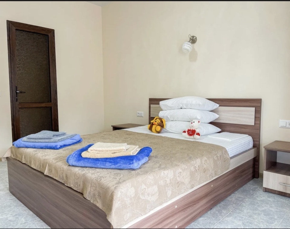 | Комментарий к цене | В стоимость номера входит: пользование кухней; wi-fi; стоянка на 5 машин на охраняемой территории; смена полотенец и белья; утюг и гладильная доска; фен; заказ такси-сервиса; рекомендации по осмотру самых интересных мест Крыма и рассказ о них; заказ свежевыловленных креветок и устриц (по желанию и приготовленных) из озера Донузлав (устричная ферма в 5 км); заказ организованных экскурсионных туров (трансфер к домовладению). |